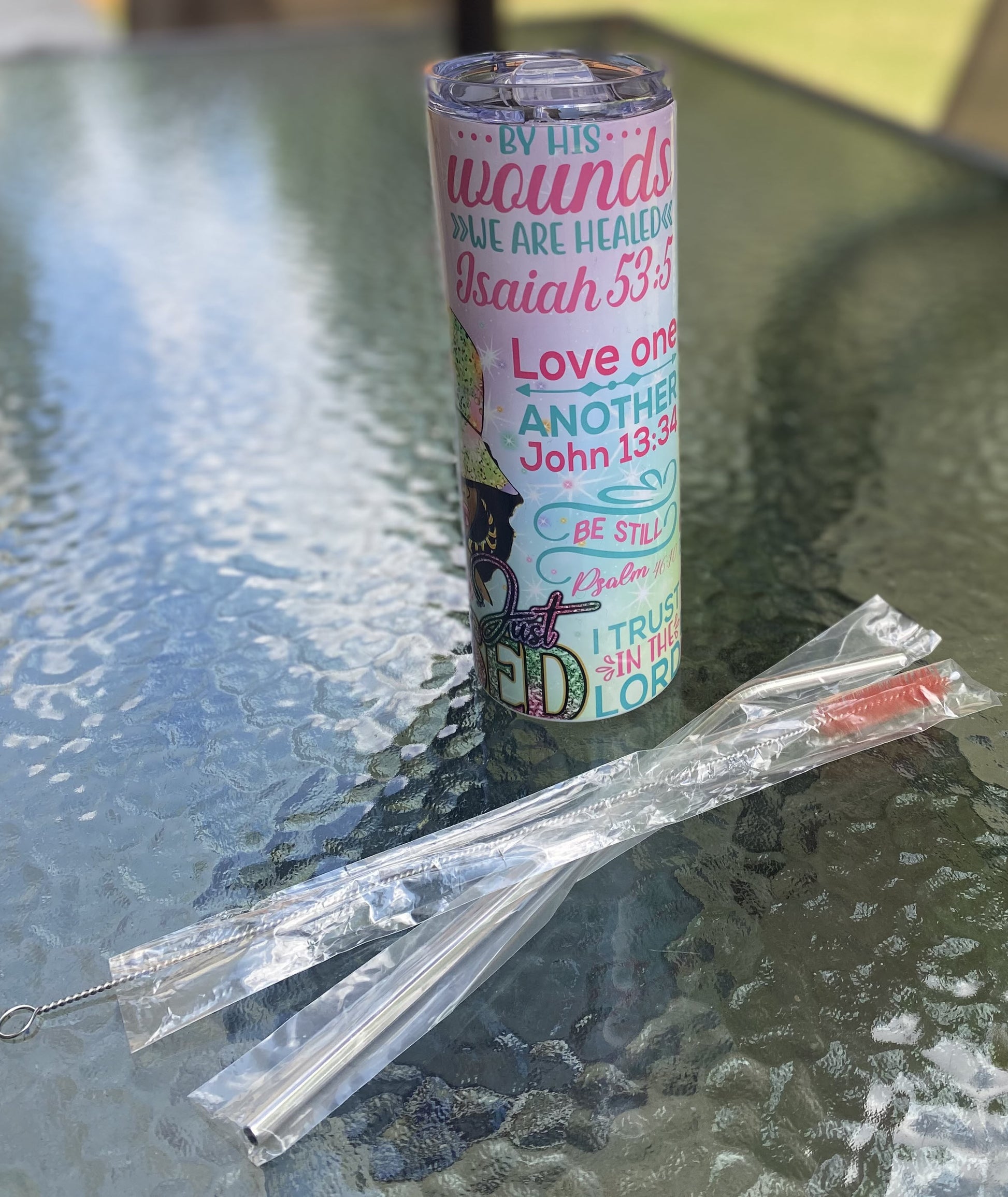 Bible Quotes Tumbler with slide lid, metal straw & straw cleaner