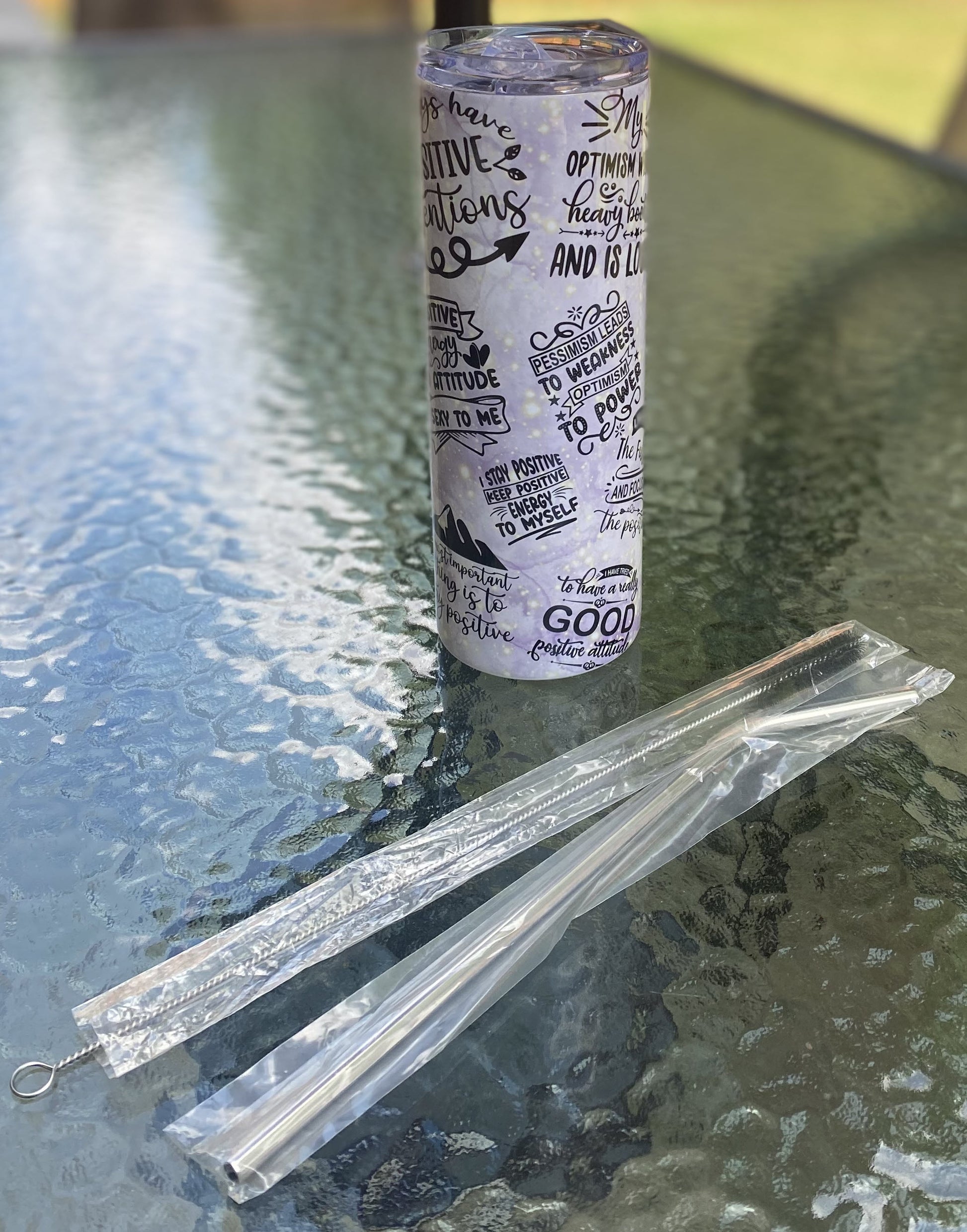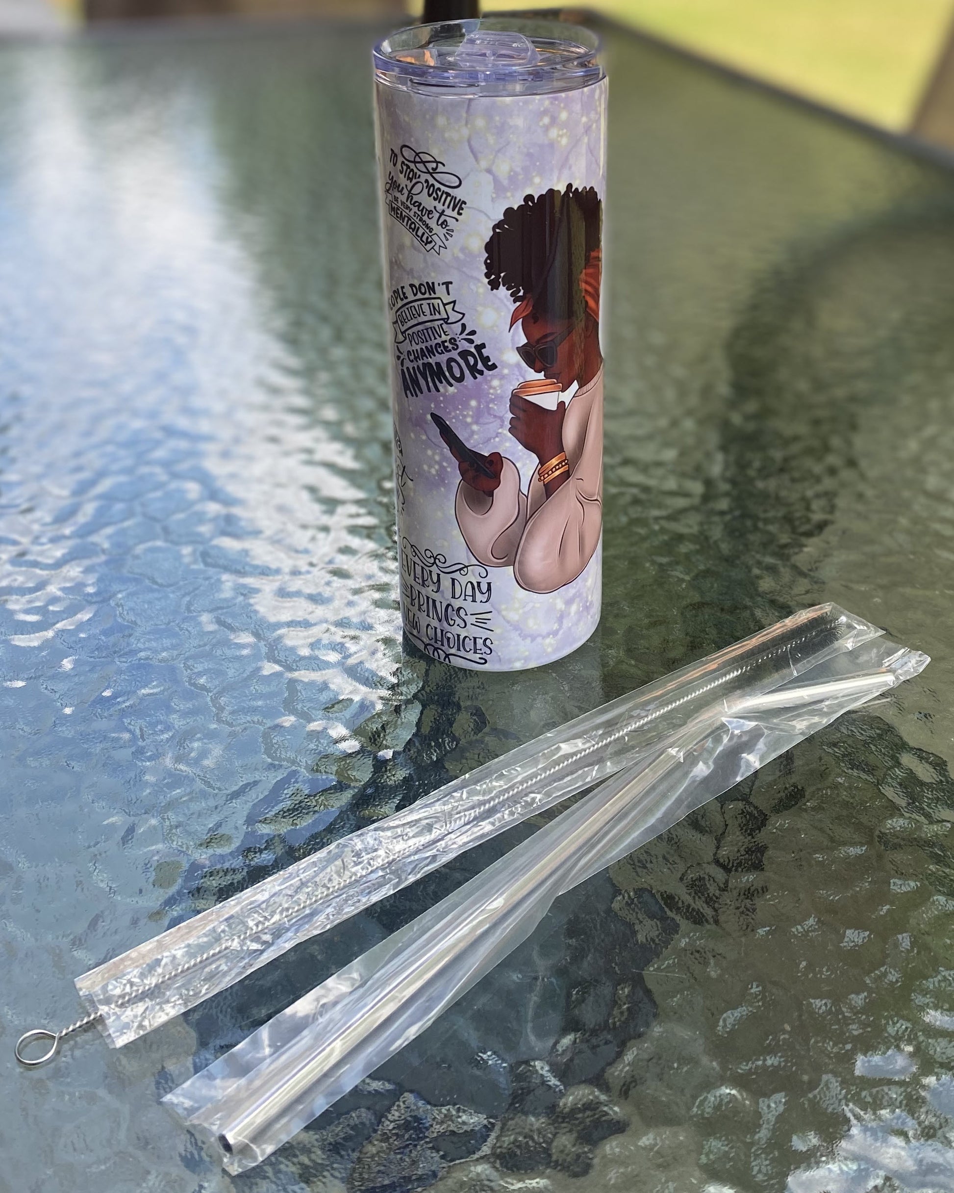 Black Affirmation Tumbler with slide lid, metal straw & straw cleaner