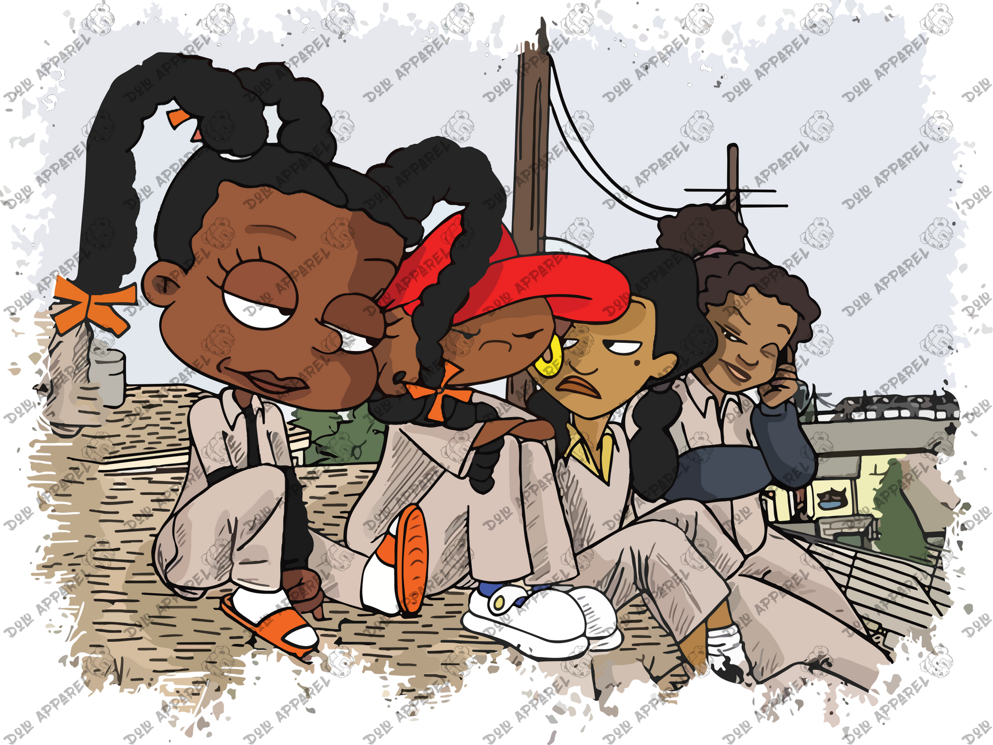 Celebrate the iconic film "Set It Off" with a fun twist on our Set It Off Cartoon Queens Tee. This unique t-shirt features a vibrant cartoon depiction of the movie's stars, reimagined as your favorite Black cartoon women. Perfect for fans of the film and lovers of animated style, this tee combines nostalgia with a bold, modern design.